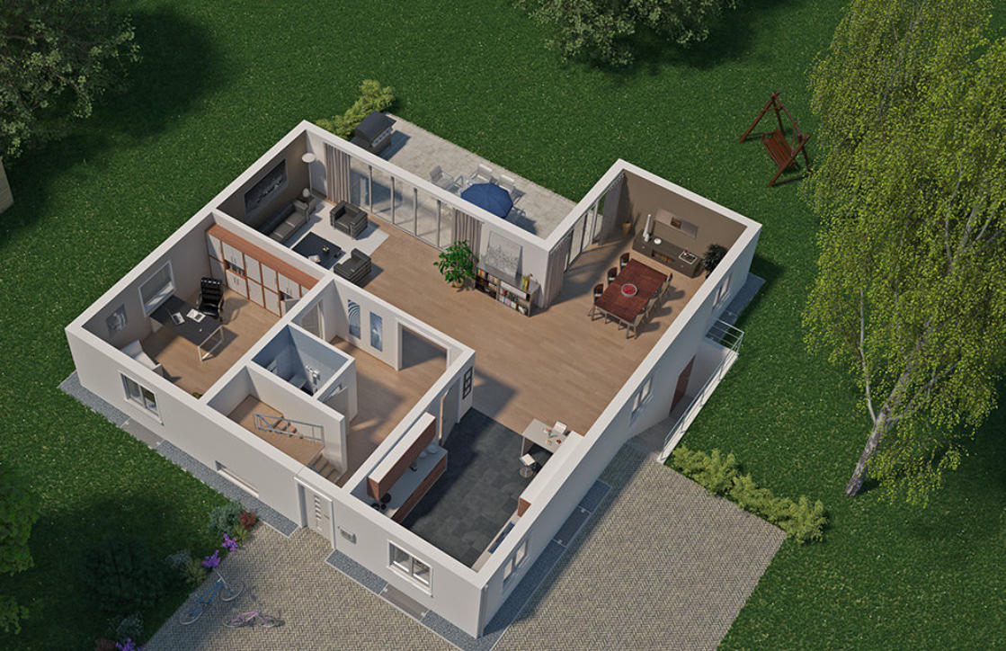 Unsere durchgängige 3D Planung ermöglicht es dem Kunden, zu jedem Zeitpunkt der Planung sich virtuell durch sein